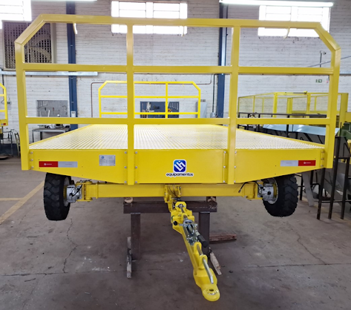 A estabilidade é outro pilar fundamental dessa carreta. Com amortecimento antichoque integrado, o equipamento opera com alta estabilidade, mesmo quando totalmente carregado e em terrenos irregulares ou em rampas. Essa característica é vital para proteger a carga de vibrações e impactos, e para garantir a segurança dos operadores. A capacidade de operar em ambientes adversos, como pátios externos sujeitos a chuva ou sol intenso, ou em áreas com poeira e detritos, demonstra a robustez de sua construção. A estrutura da carreta é construída para resistir às condições mais severas, garantindo uma longa vida útil e baixa necessidade de manutenção.